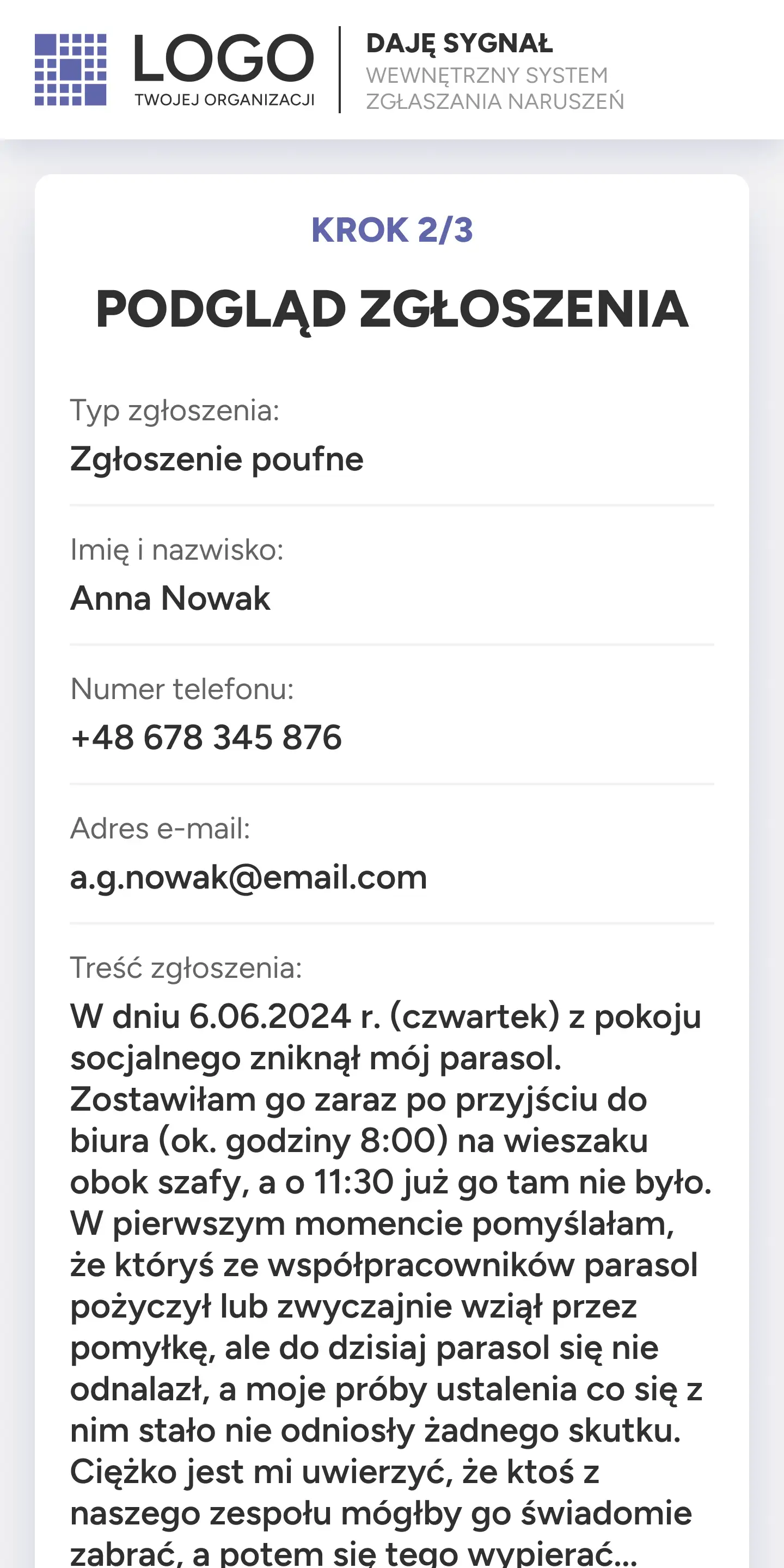 Nasze narzędzie umożliwia bieżące monitorowanie wszystkich zgłoszeń oraz pełną kontrolę nad dostępem do danych. Tylko uprawnione osoby mają wgląd w zgłoszenia, co zapewnia bezpieczeństwo i poufność procesów.